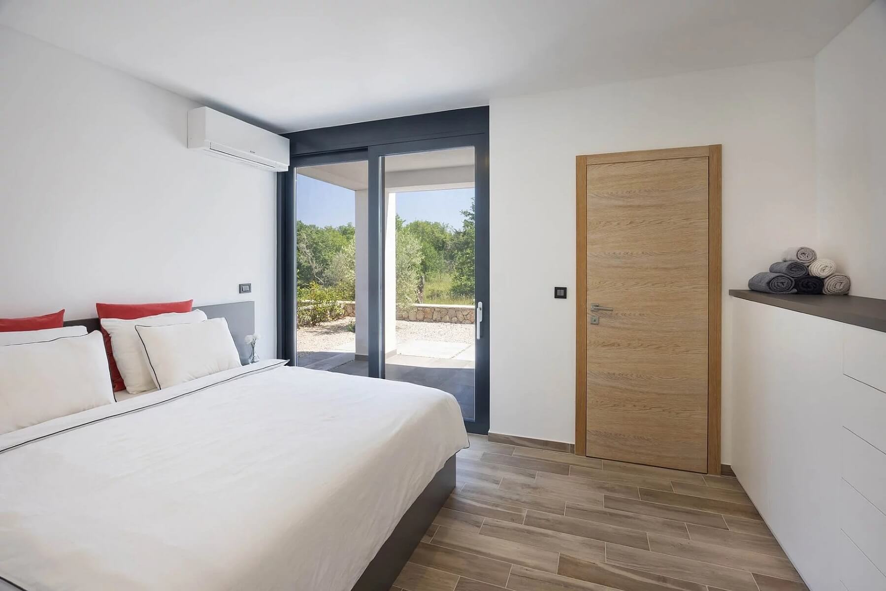 Moderní dvoupodlažní vila s bazénem tvoří součást soukromého resortu na ostrově Krk přibližně 25 minut jízdy od letiště v Rijece.