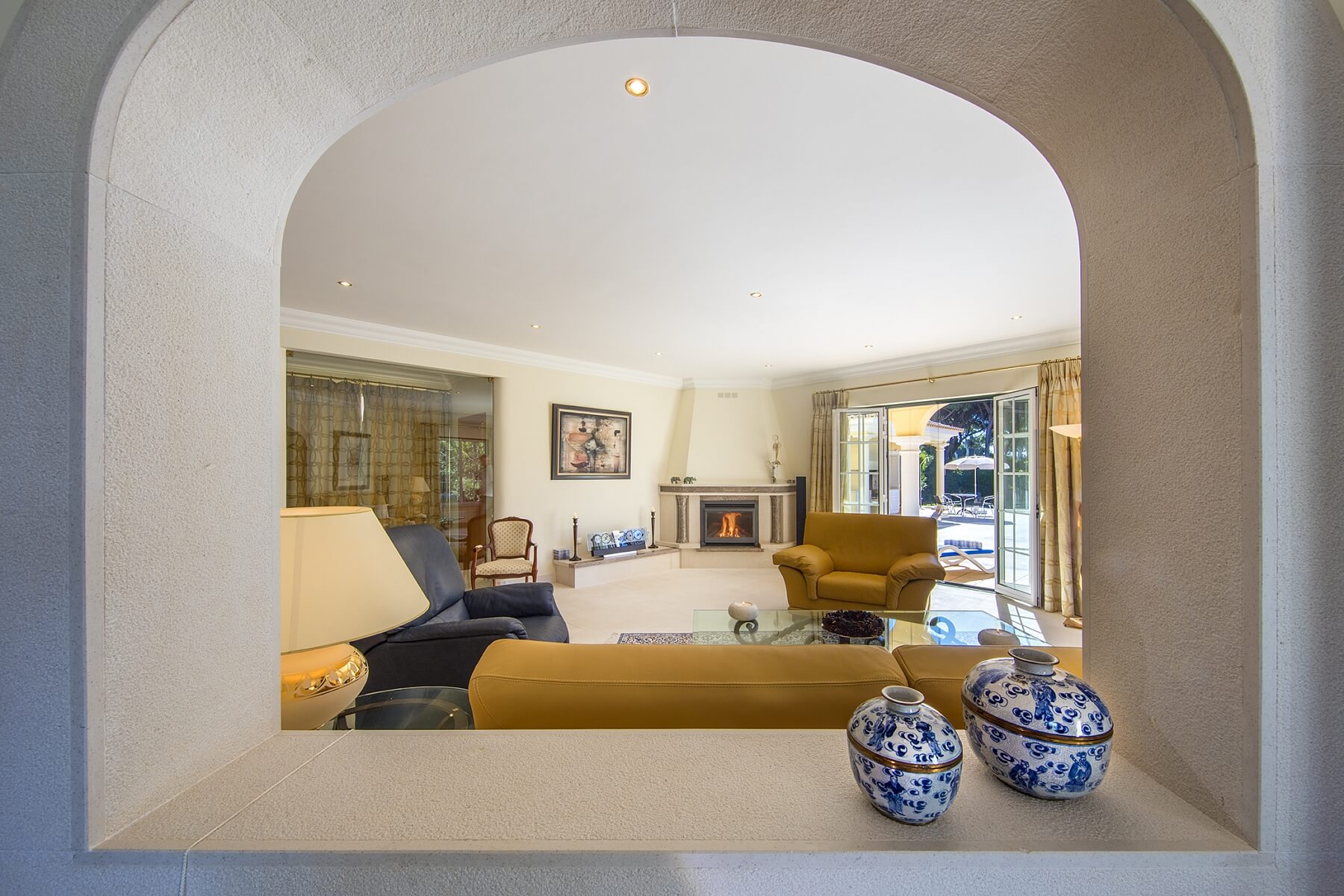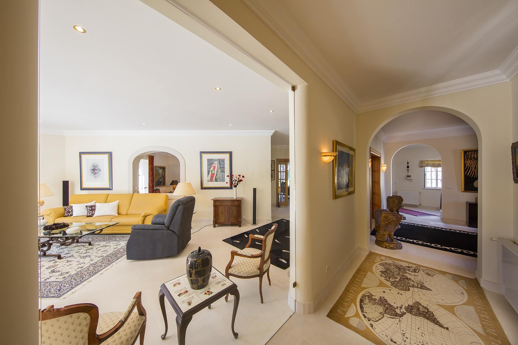 Vilu laděnou do typicky středomořského stylu tvoří obývací pokoj s krbem a francouzskými okny vedoucími na terasy, knihovna / kancelář, moderní kuchyň s tradičními detaily, snídaňovým koutem a prostornou jídelnou. Hlavní ložnice má francouzská okna, která vedou k balkónu, šatně a krásné mramorové koupelně. K dispozici je krytá terasa s vířivkou a přístupem z hlavní ložnice. Interiér dále dotváří druhá ložnice (také s koupelnou, šatnou a balkónem), vinný sklep / degustační místnost a dvojitá garáž s pracovním prostorem a koupelnou. Součástí nemovitosti je i dům pro hosty, který je propojen krytým venkovním salonkem. Tento dům tvoří dvě ložnice a koupelna (v současné době jedna místnost slouží jako obývací pokoj s kuchyní.) Vila i dům pro hosty mají klimatizaci a bezpečnostní systém. K dispozici jsou dvě garážová stání.