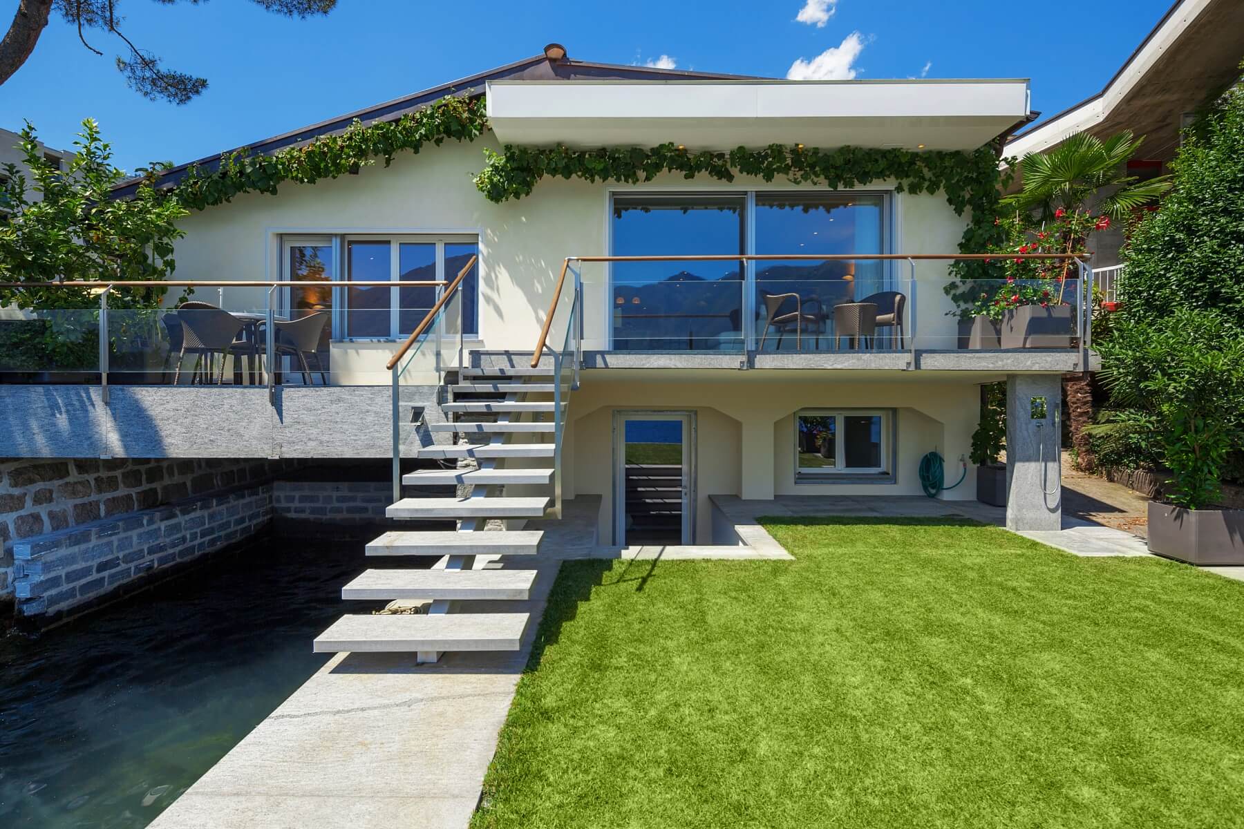 Okouzlující moderní dům, který stojí přímo na břehu slavného jezera Maggiore, jen chvilku chůze od proslulého Piazza Grande Locarno, nabídne majitelům i soukromé kotviště.