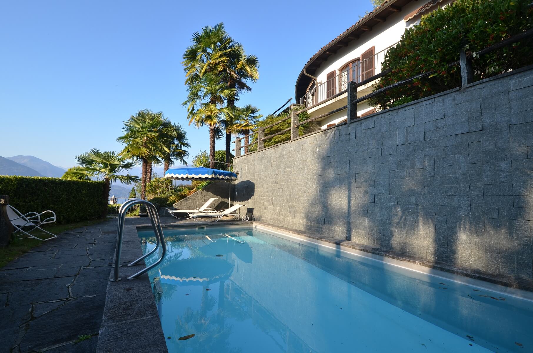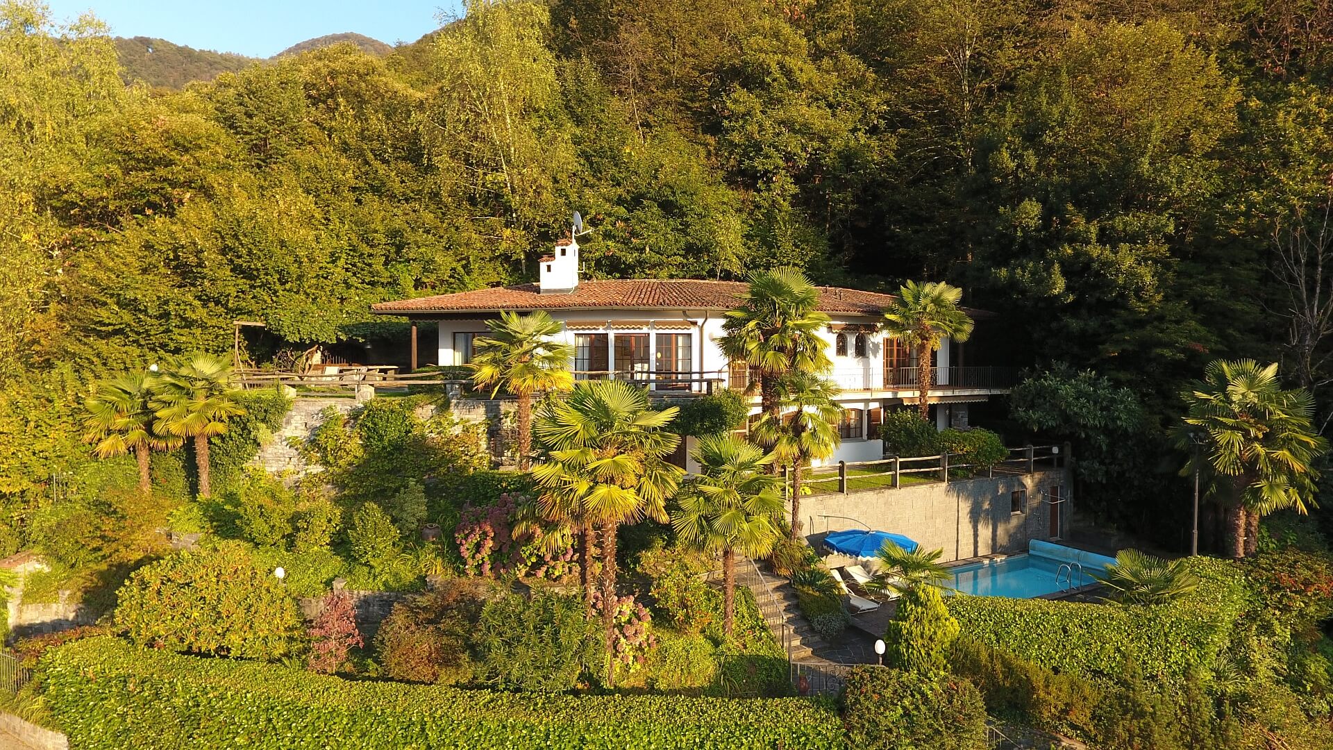 Romantická středomořská vila s bazénem stojí v tiché, panoramatické lokalitě na pozemku, jehož součástí je i menší část přilehlého lesa. Nerušené místo s úžasnými výhledy na malebnou vesničku Caviano s kostelní věží a jezerem.