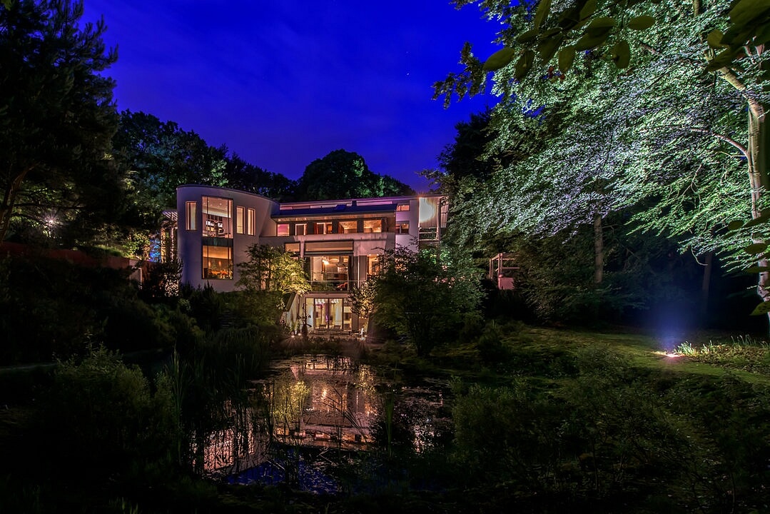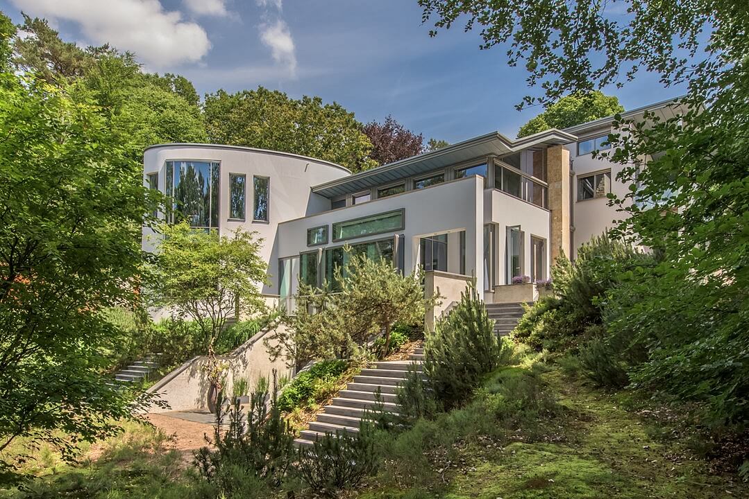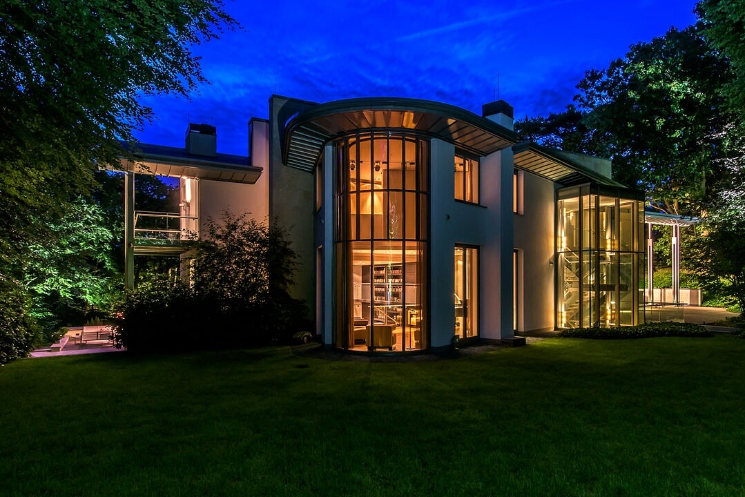 Projektování a výstavba moderní vily, která byla inspirována slavnou stavbou Franka Lloyda Wrighta - Falling Water House v Pensylvánii, trvala téměř deset let. Dům, který se krásně prolíná s okolní krajinou, je harmonicky zasazen do pozemku o zhruba 32 000 m2 v kopcovité a zalesněné oblasti Bosch en Duin. Vila zaujímá plochu 2 163 m2 na celkem 7 podlažích.