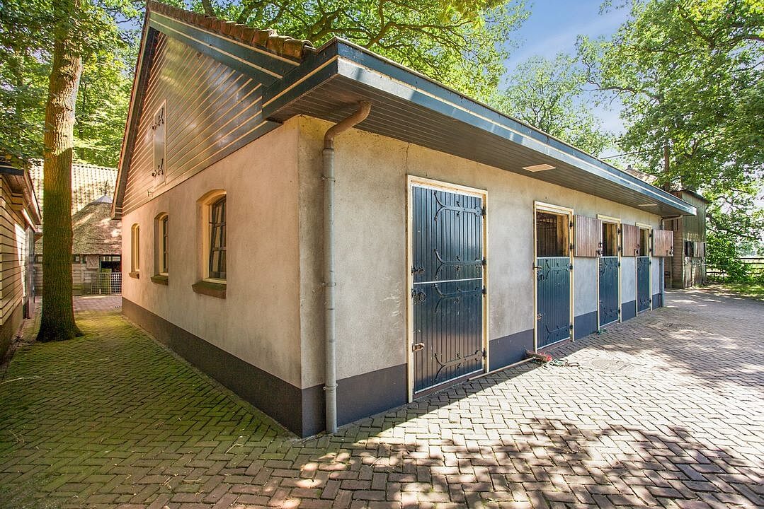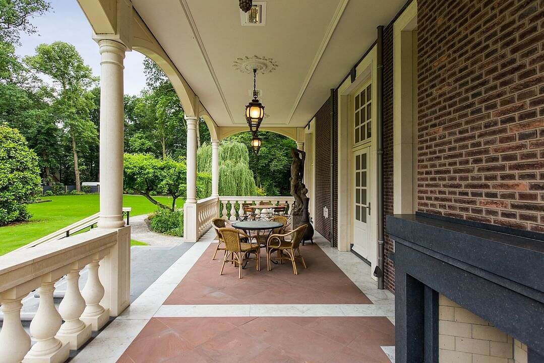 Na pozemek se dostanete přes vstupní bránu a malý most, který vede nad kanálem. Klasický cihlový dům se nachází uprostřed trávníku obklopeném vzrostlými stromy a zalesněnými plochami. Najdete zde mnoho míst jak k aktivnímu, tak pasivnímu odpočinku: krytý bazén, domácí posilovnu, saunu, několik teras a verand nebo zimní zahradu, ze které je příjemný výhled na rybník před domem.
