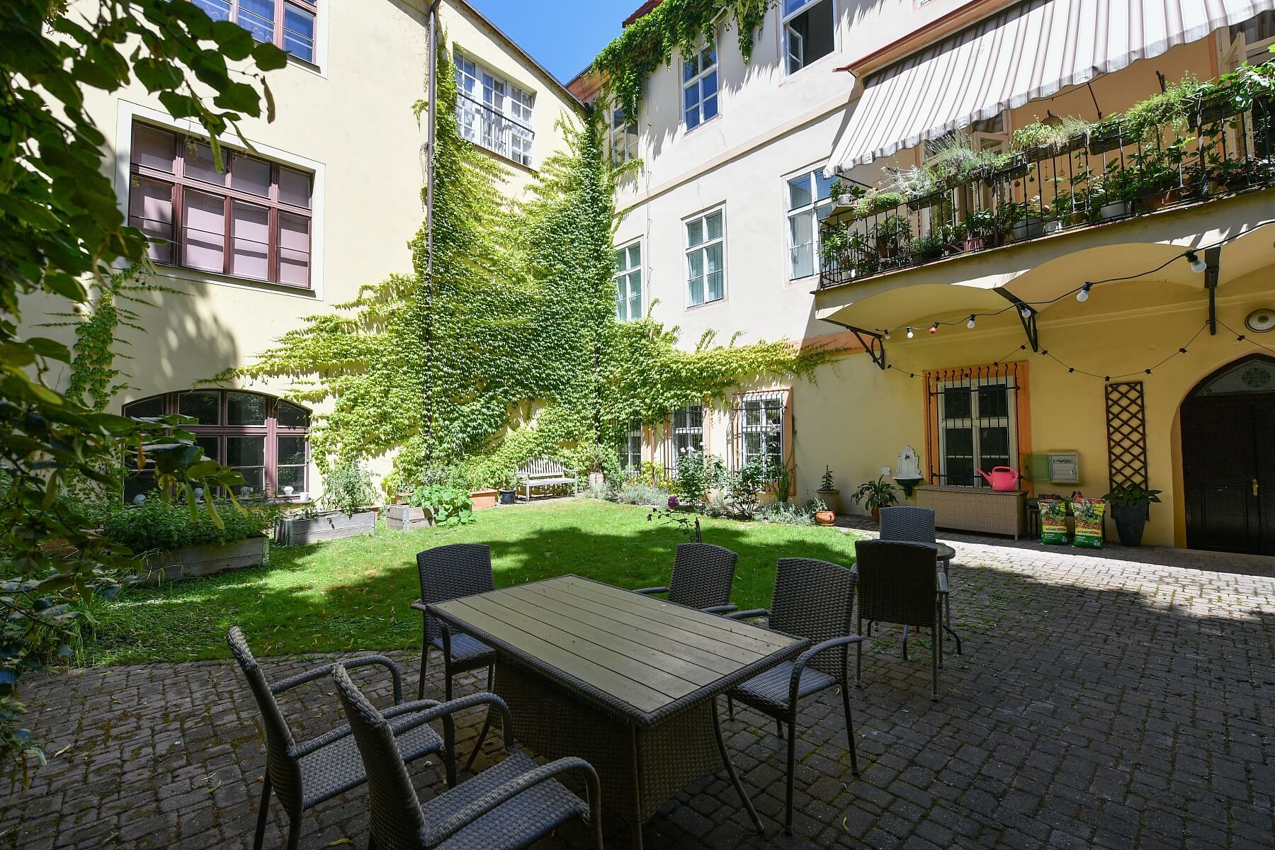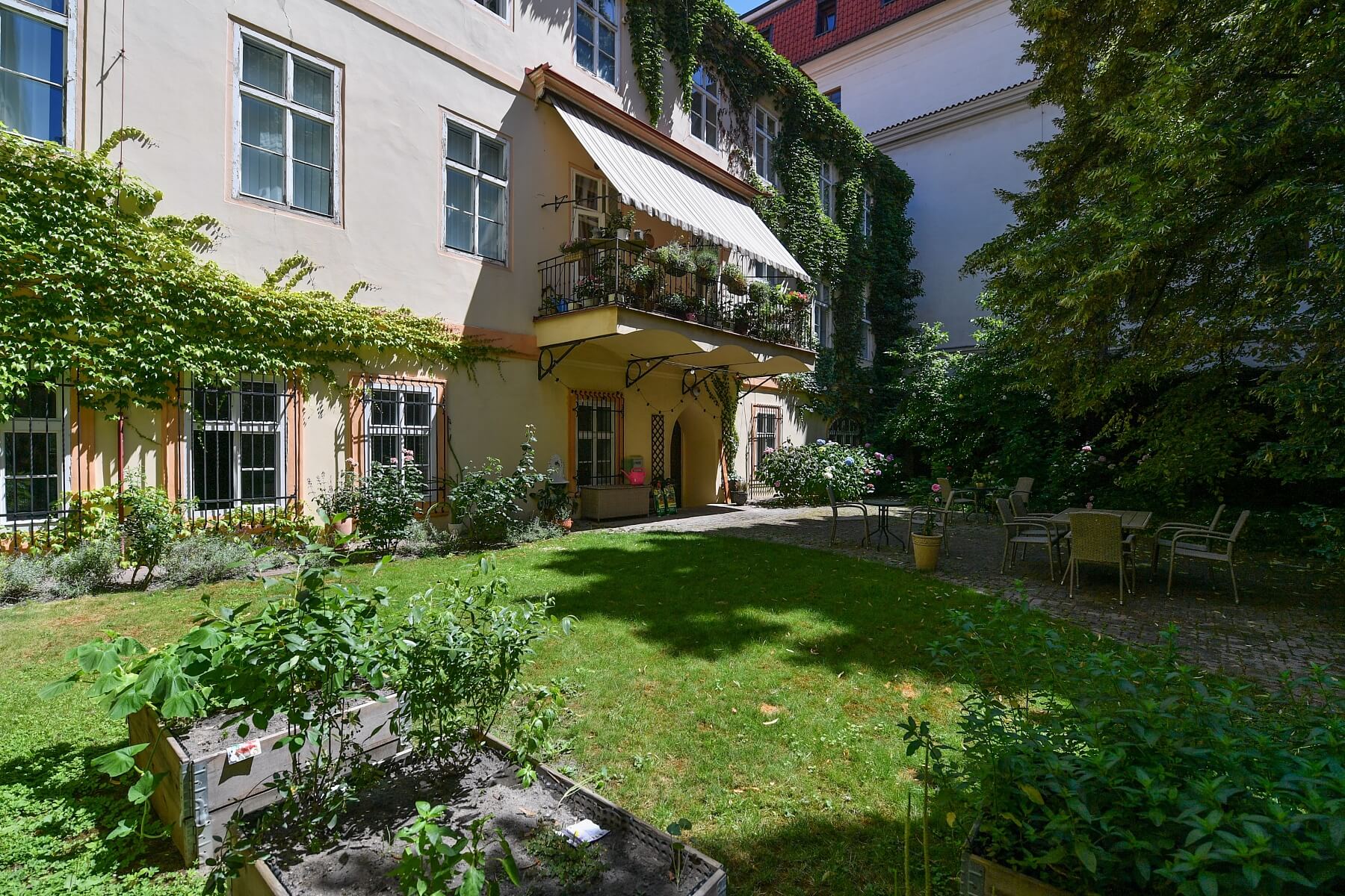 Zachované původní prvky, dubové parkety, dlažba, štukové stropy, kachlová kamna, bezpečnostní vstupní dveře, vestavěná šatní skříň, pračka, myčka, mikrovlnná trouba, alarm. Parkovací místo ve dvoře v ceně. K domu přiléhá romantická společná zahrada (170 m2). K dispozici od září 2025, po dohodě možno dříve.