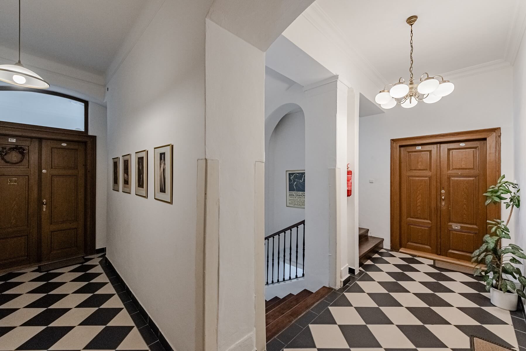 Tento zrekonstruovaný, zařízený stylový byt se nachází ve 2. patře půvabného historického domu v srdci malebného Starého Města, ve vyhledávané lokalitě nedaleko Staroměstského náměstí, avšak v klidové zóně, přesto v oblasti s plnou občanskou vybaveností a množstvím kaváren a restaurací, pár minut chůze od stanic metra Národní třída a Můstek.