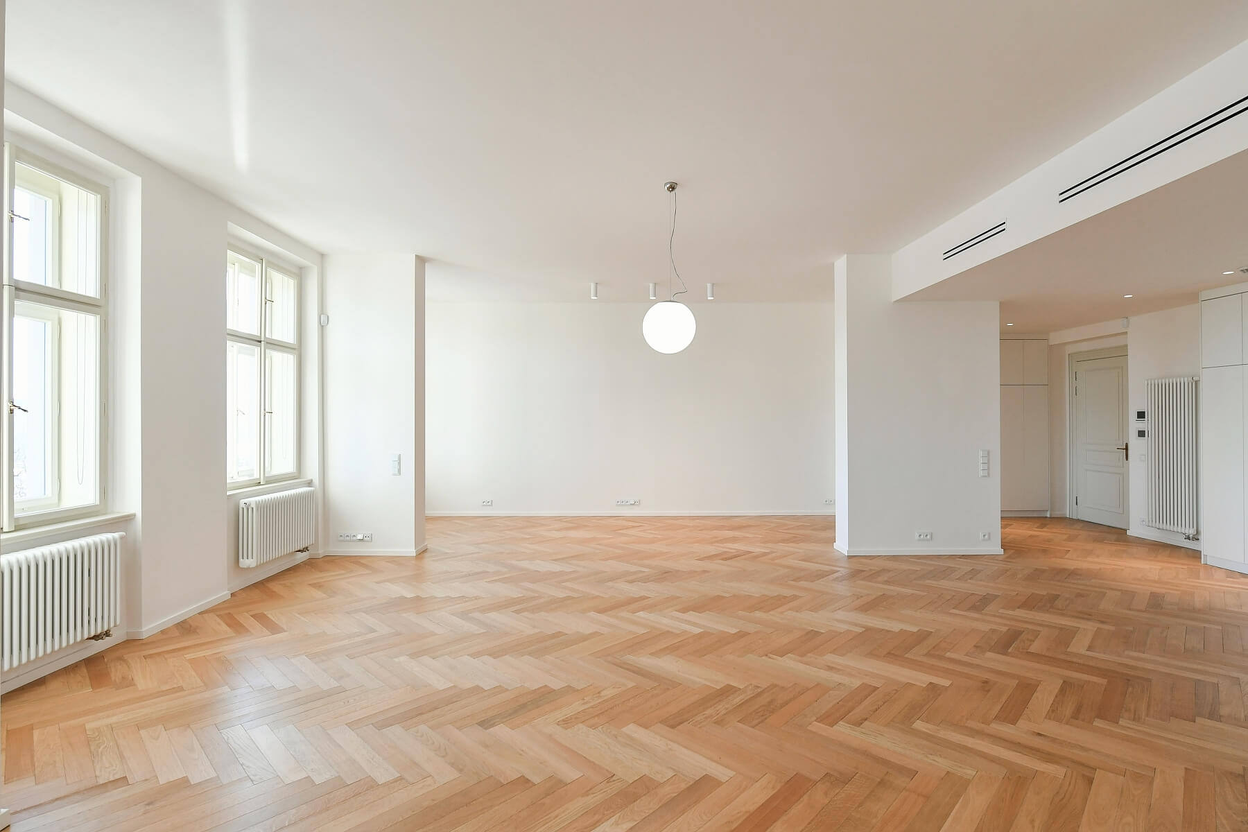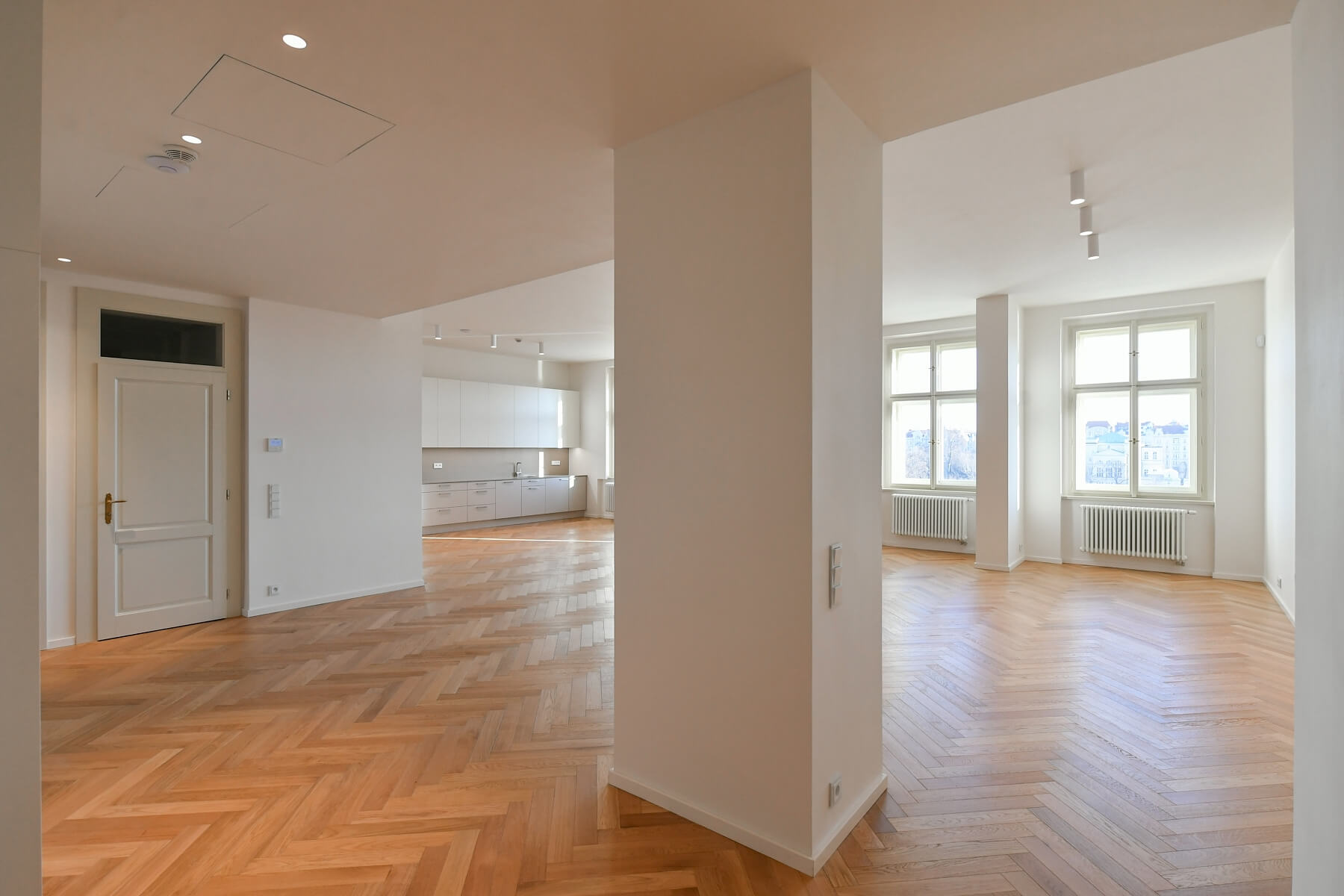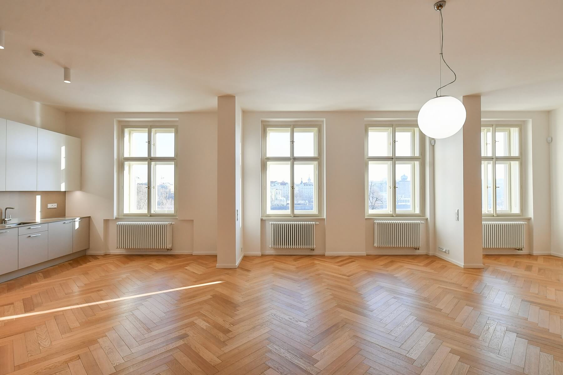 Nadstandardní nábřežní byt s parkováním. Nabízíme k pronájmu kompletně zrekonstruovaný klimatizovaný nezařízený byt s balkonem a 2 koupelnami ve 4. patře historického bytového domu po pečlivé rekonstrukci, se saunou, 24/7 ostrahou, kamerovým systémem a výtahem. Budova leží v atraktivní lokalitě v ulici lemované stromy přímo na nábřeží Vltavy, v pěším dosahu parku na Kampě, Petřínských sadů, Malé Strany a Starého Města, v rychlé dostupnosti do centra, komerčního centra Anděl a Francouzského lycea.