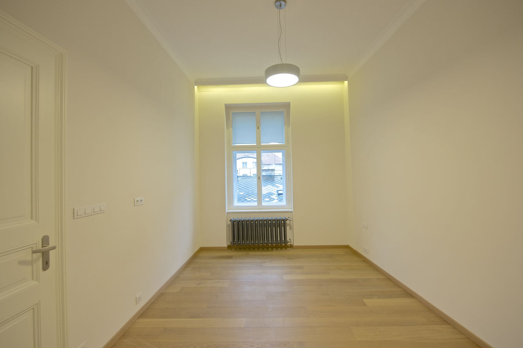 Nadstandardní klimatizovaný byt se 3 ložnicemi a 2 koupelnami ve 3. patře kompletně zrekonstruované rezidence s výtahem a zachovanými původními prvky, zatravněným atriem, kamerovým systémem a parkováním. Klidná ulice v pěším dosahu Karlova náměstí se stanicí metra a četnými zastávkami tramvají.