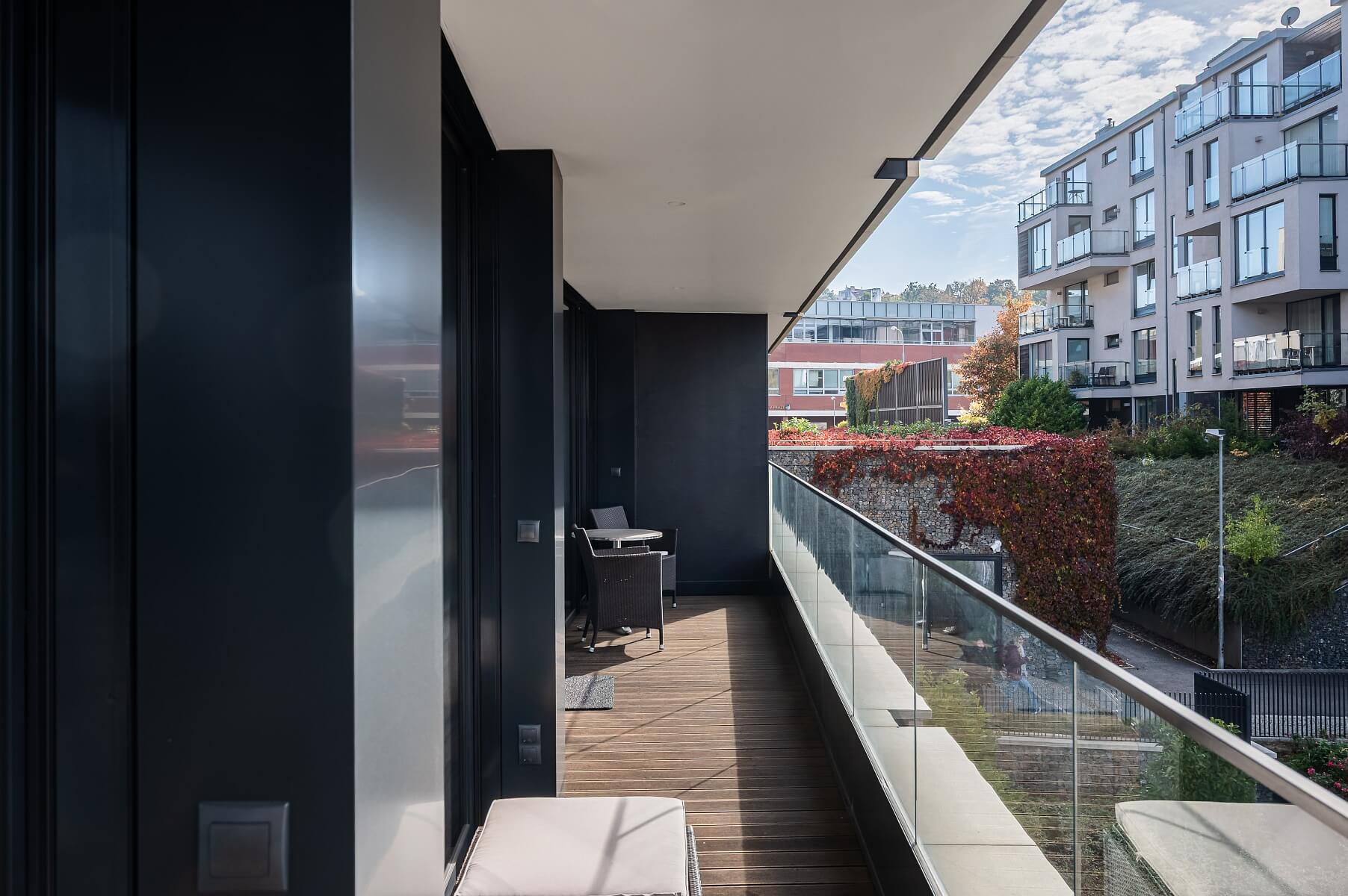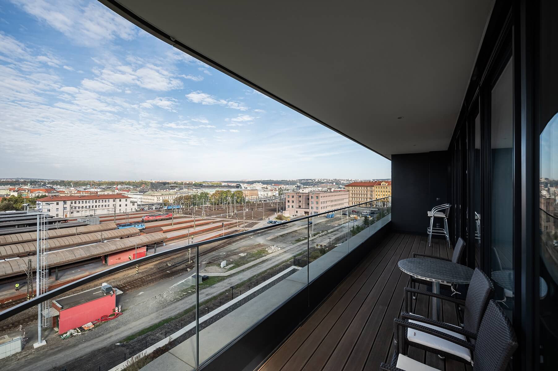Nabízíme k pronájmu nezařízený klimatizovaný byt se 2 koupelnami a terasou s krásnými výhledy, situovaný ve 2. patře nedávno postaveného projektu Rezidence Churchill s 24/7 recepcí, ostrahou, kamerovým systémem a podzemním parkováním. Rezidence leží ve vyhledávané lokalitě na Vinohradech v blízkém dosahu historického a kulturního centra Prahy a plné občanské vybavenosti, projekt je situován v přímém sousedství VŠE, pár kroků od parku Riegrovy sady. V pěším dosahu budovy je také Václavské náměstí a stanice metra Muzeum a Hlavní nádraží.