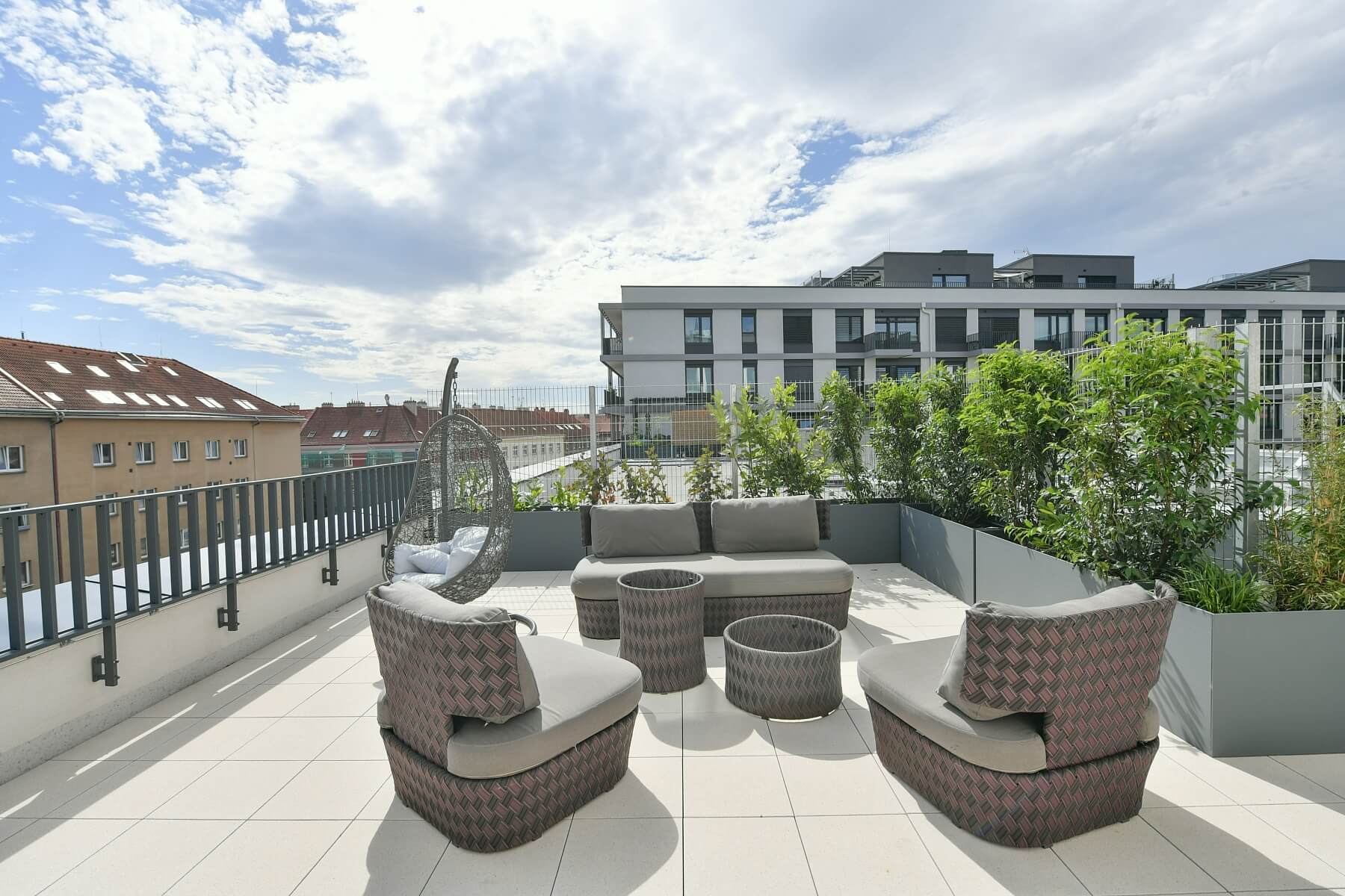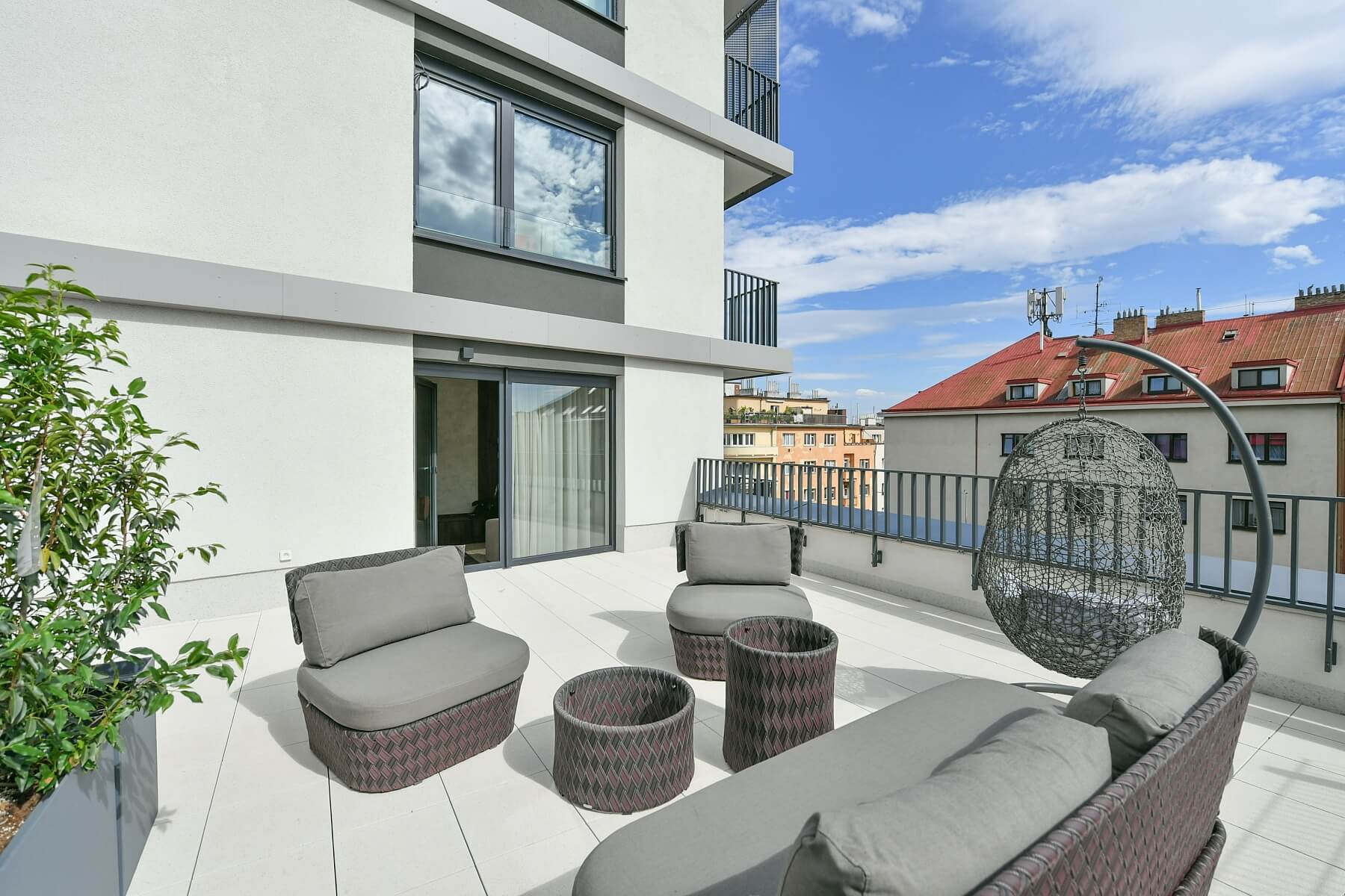 Nabízíme k pronájmu nový, kompletně zařízený byt s balkonem a velkou terasou, situovaný ve 4. patře nově postaveného bytového domu s upraveným vnitroblokem s posezením a podzemním parkováním v Praze Vysočanech, 5 minut chůze od stanice metra Vysočanská. Budova se nachází v klidné lokalitě nedaleko oblíbeného parku Zahrádky s říčkou Rokytkou, rybníkem, dětskými hřišti, fitness stezkou a cyklostezkou, 8 minut chůze od stanice metra Kolbenova. V blízkém dosahu jsou také umělecké centrum Pragovka Art District, nákupní centrum Fénix, Galerie Harfa a O2 Aréna.