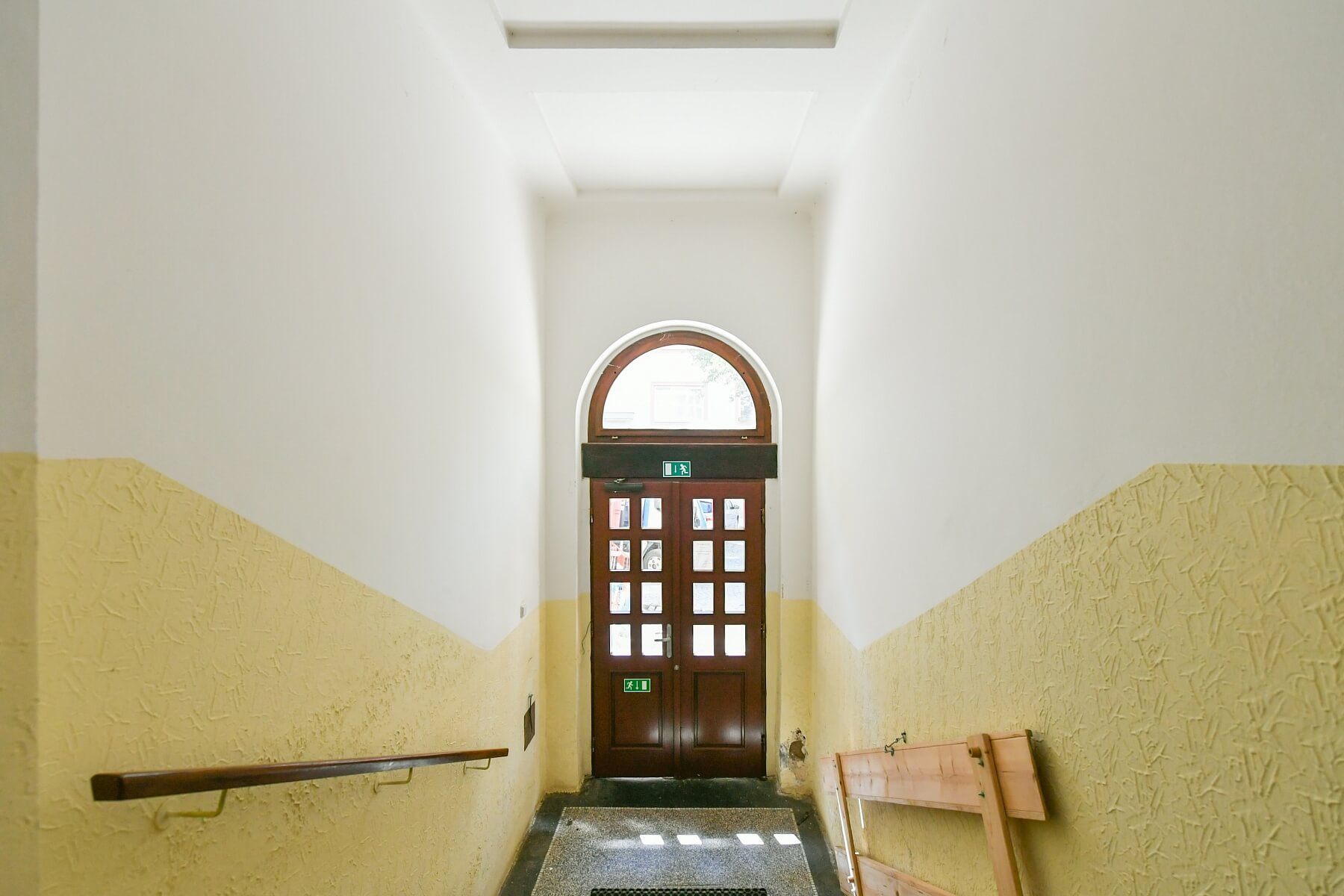 Ve spodní části bytu se nachází obývací pokoj s plně vybavenou kuchyní, koupelna se sprchovým koutem a toaletou, technická komora pod schody a vstupní hala. V horní úrovni bytu je galerie s kuřáckým balkonem s výhledem do dvora, 2 ložnice s přístupem na terasu také s výhledem do dvora a druhá koupelna s masážní vanou a toaletou s bidetovou sprškou.