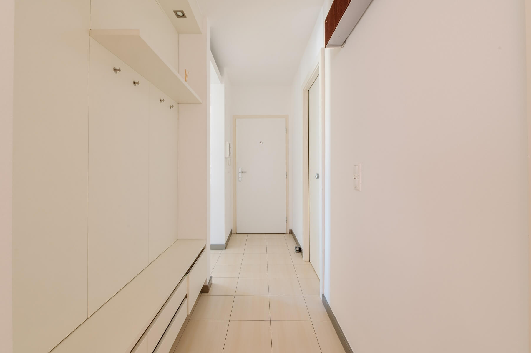 Dispozičně byt poskytuje velkorysý obytný prostor sestávající z otevřené denní zóny s kuchyní a jídelní částí, dvou samostatných ložnic, koupelny, samostatné toalety a technické místnosti. V technickém zázemí se nachází moderní kotel a kvalitní bílé spotřebiče včetně pračky a sušičky značky AEG. K bytu náleží i menší lodžie orientovaná do vnitrobloku, která poskytuje příjemné klidné prostředí a dostatek přirozeného světla.