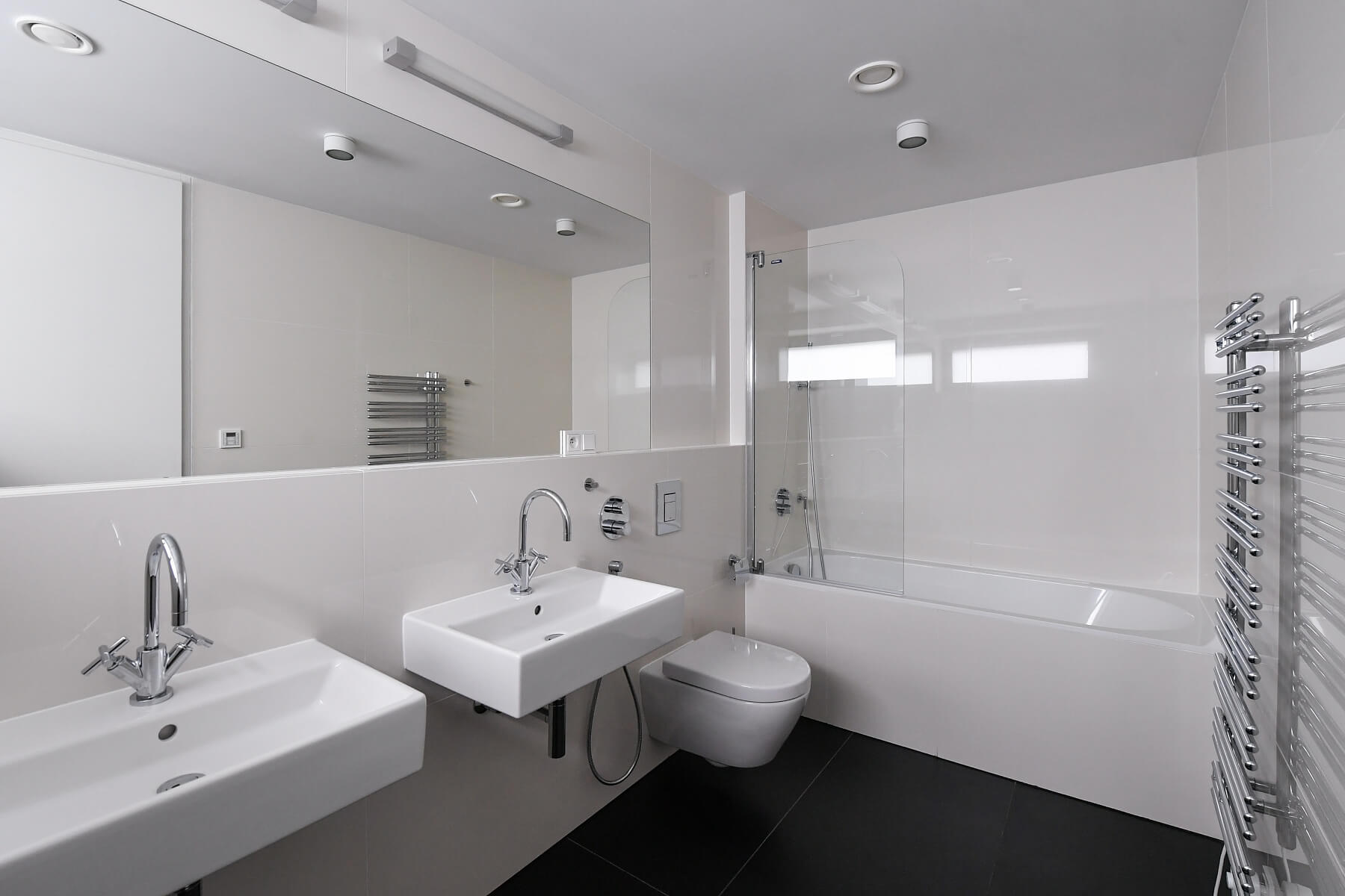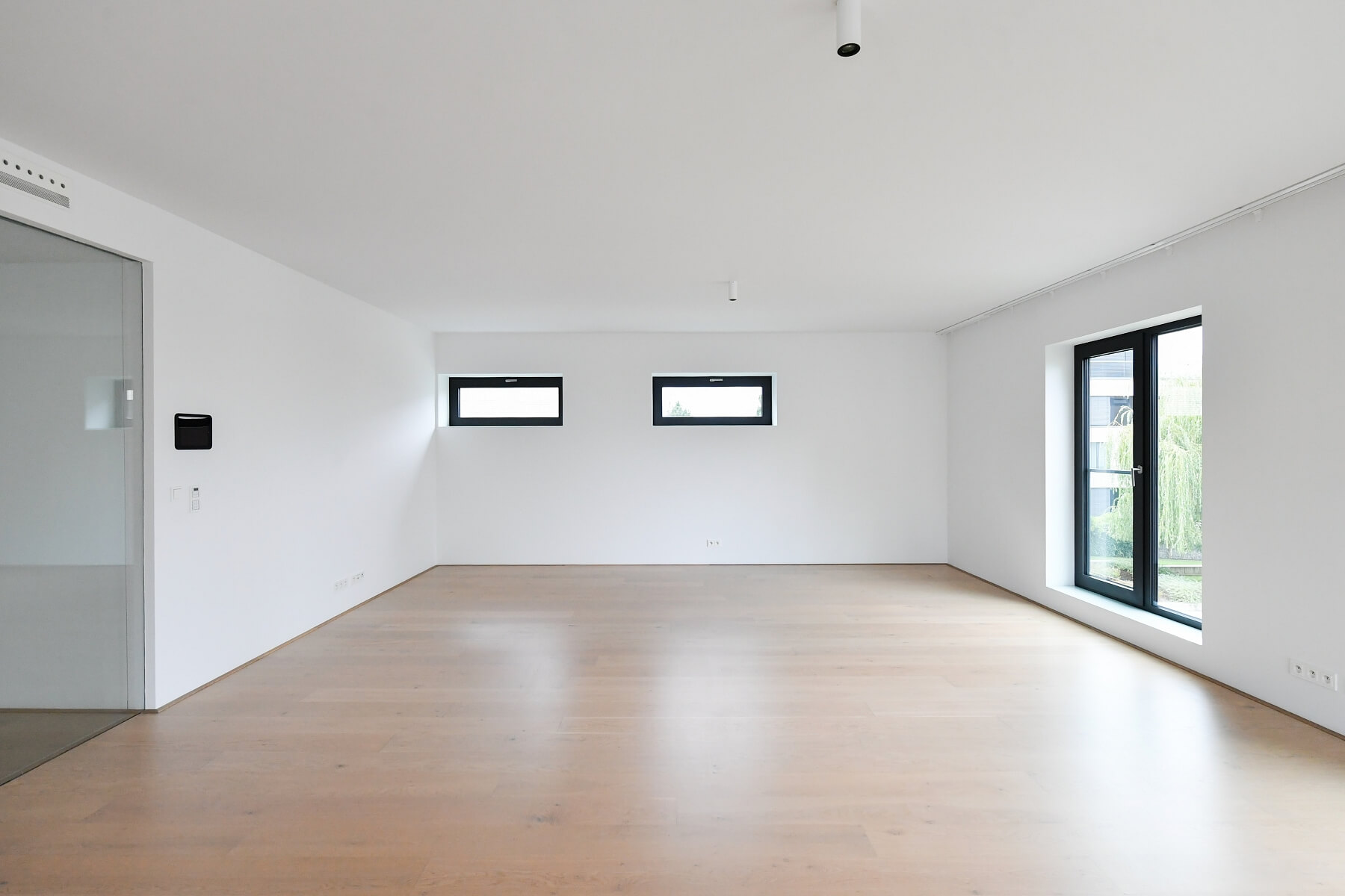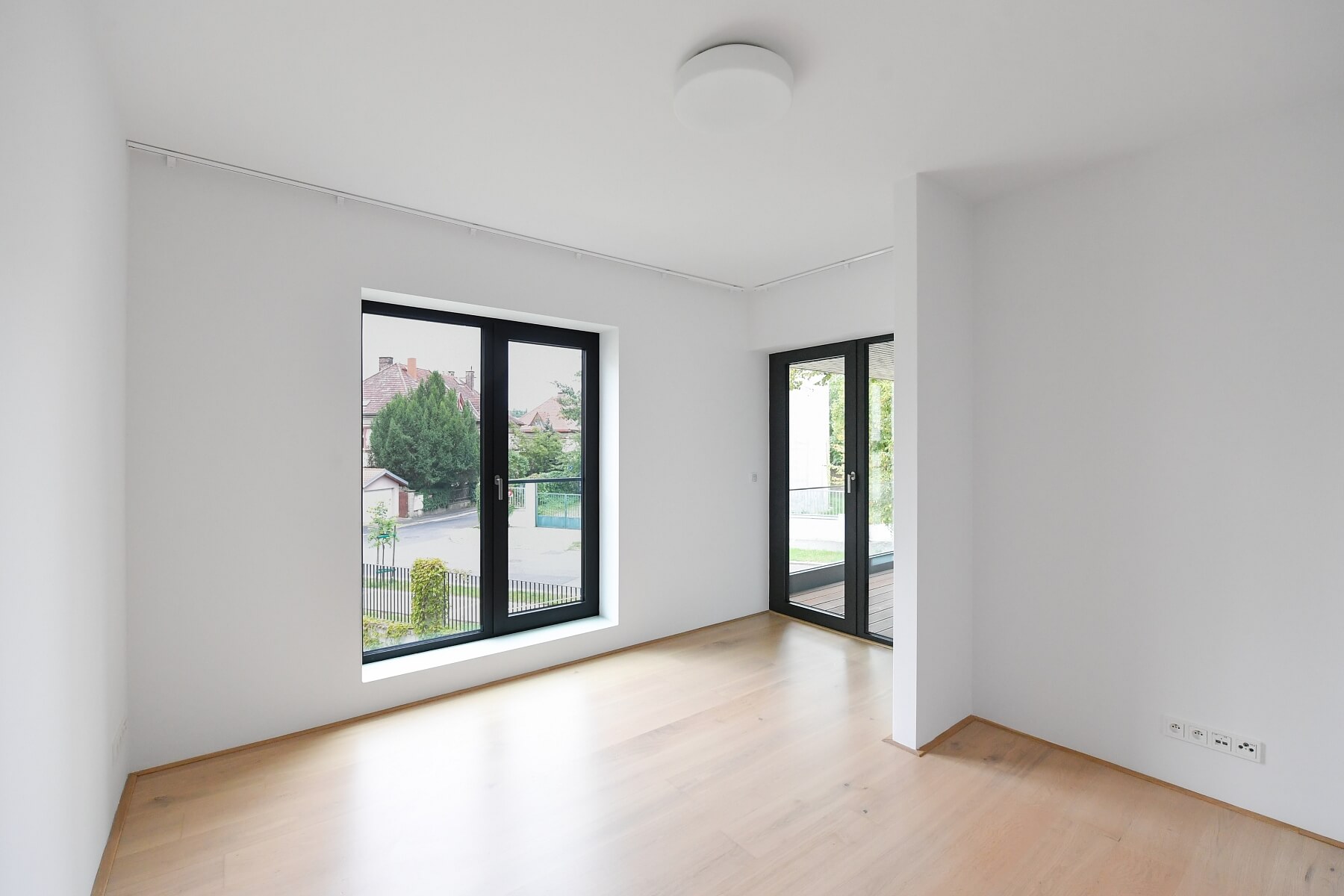 Špičkové materiály, dubové podlahy, dlažba, tropické dřevo na terase, podlahové vytápění, vestavěné skříně, kapilární systém chlazení stropů a větrání s rekuperací tepla, hliníková okna s izolačním trojsklem, alarm. Sklep, výtah, kamerový systém. Dvě garážová stání zahrnuta v ceně nájmu.