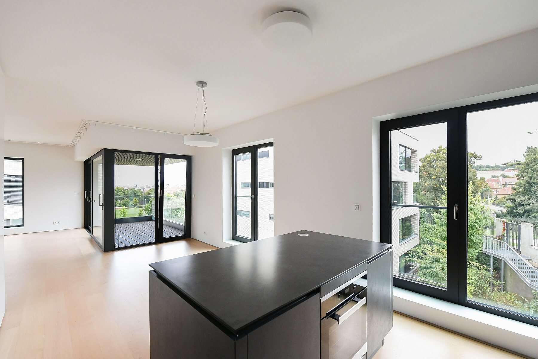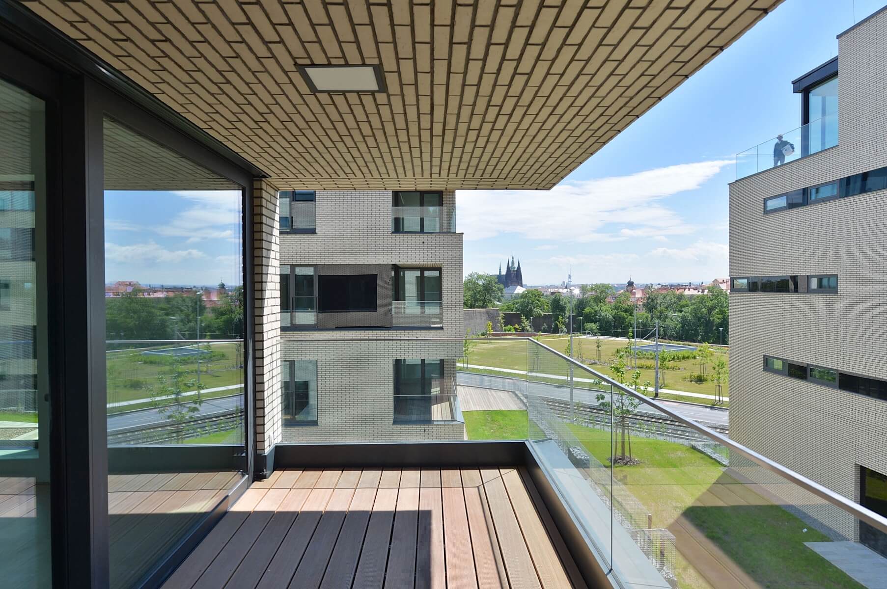 Vysoce kvalitní byt se 2 terasami, situovaný v exkluzivním projektu Royal Triangle navrženém renomovaným architektonickým ateliérem Schindler Seko. 2. patro budovy v uzavřeném zabezpečeném areálu s recepcí, společnou zahradou, podzemním parkováním a výhledem na Petřín, Pražský hrad, přilehlý park a okolní rezidenční zástavbu. Atraktivní lokalita na pomezí vyhledávaných rezidenčních čtvrtí Střešovice a Ořechovka, s rychlým spojením do centra a k plné občanské vybavenosti, s výbornou dostupností na letiště a do mezinárodních škol. Pár minut ke stanicím metra Hradčanská a Dejvická.
