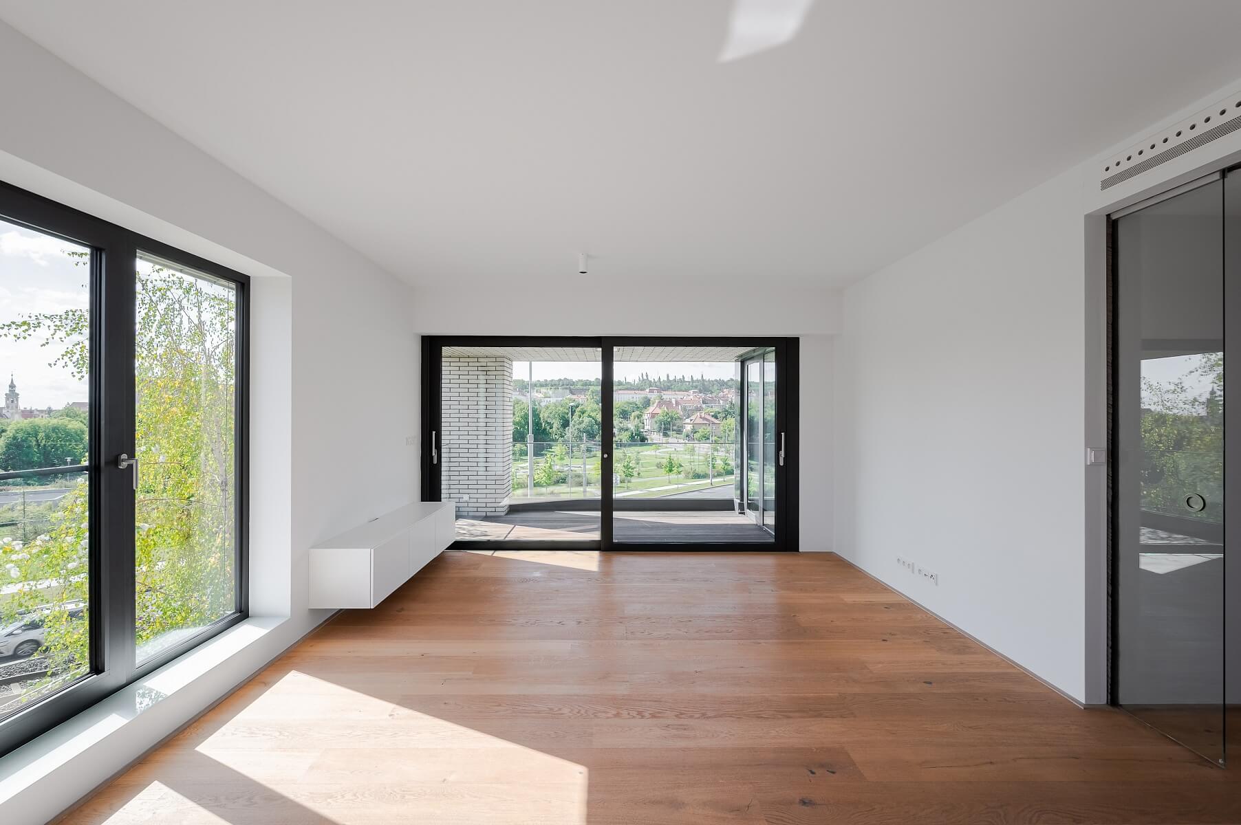 Vysoce kvalitní nezařízený byt s terasou a krásnými výhledy, situovaný v exkluzivním projektu Royal Triangle navrženém renomovaným architektonickým ateliérem Schindler Seko. 1. patro budovy v uzavřeném zabezpečeném areálu s recepcí, společnou zahradou, podzemním parkováním a výhledem na Petřín, Pražský hrad, přilehlý park a okolní rezidenční zástavbu. Atraktivní lokalita na pomezí vyhledávaných rezidenčních čtvrtí Střešovice a Ořechovka, s rychlým spojením do centra a k plné občanské vybavenosti, s výbornou dostupností na letiště a do mezinárodních škol. Pár minut ke stanicím metra Hradčanská a Dejvická.
