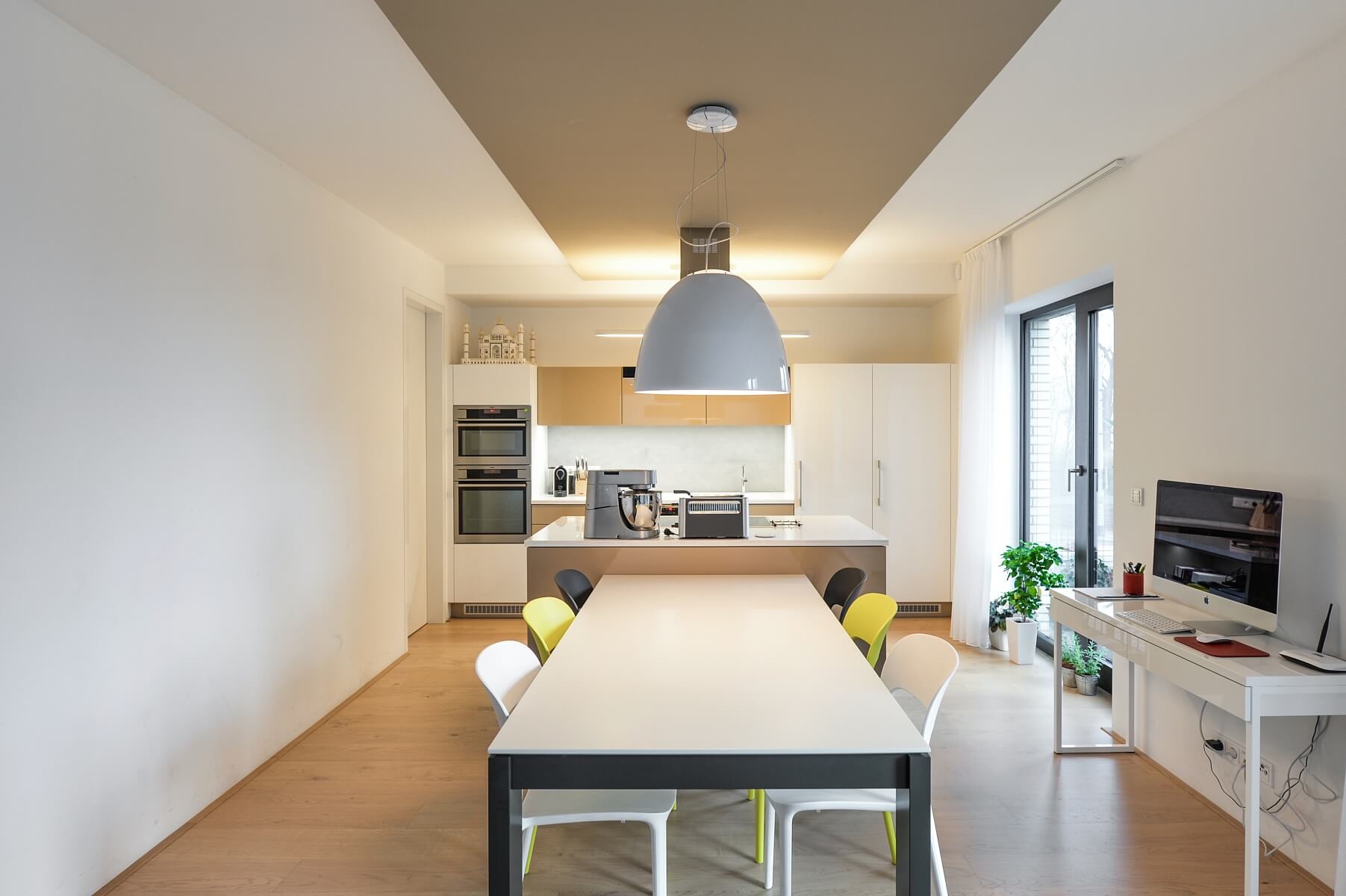 Interiér bytu tvoří prostorný obývací pokoj s plně vybavenou kuchyní, jídelnou a velkou spíží, 2 samostatné ložnice, 2 koupelny (sprchový kout / vana, toaleta), vybavená šatna a vstupní hala. Terasa / zahrada je přístupná ze všech hlavních místností.
