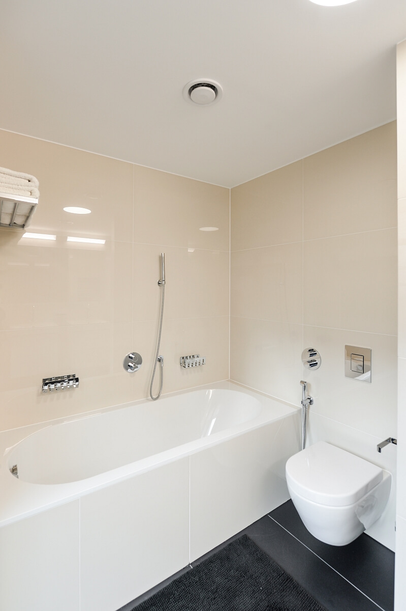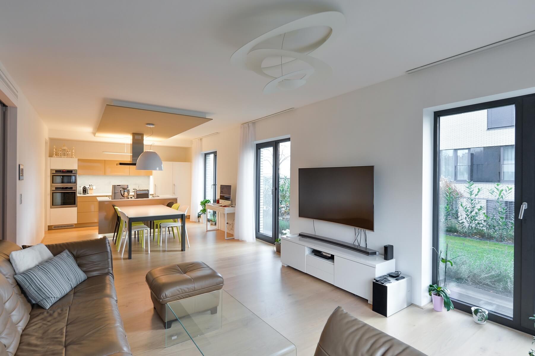 Špičkové materiály, dřevěné podlahy, velkoformátová dlažba, tropické dřevo na terase, bezpečnostní vstupní dveře, podlahové vytápění, předokenní žaluzie, kapilární systém chlazení stropů a větrání s rekuperací tepla, hliníková okna s izolačním trojsklem, pračka, sušička, myčka, indukční varná deska, mikrovlnná trouba, nádobí a kuch. náčiní, TV, alarm, videotelefon, sklep, výtah, kamerový systém, vstup do budovy na čip. V ceně jsou zahrnuta 2 parkovací stání v podzemních garážích.