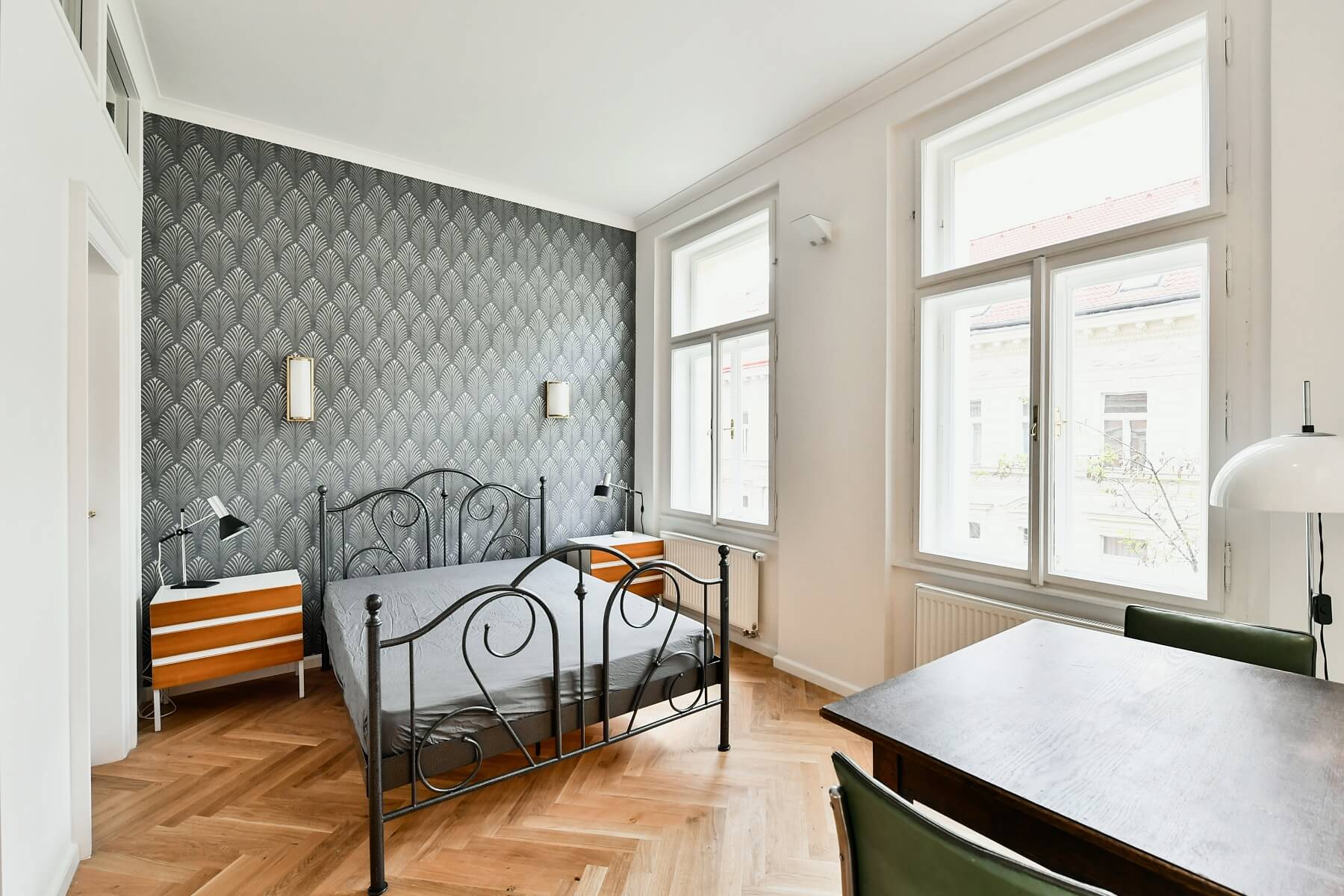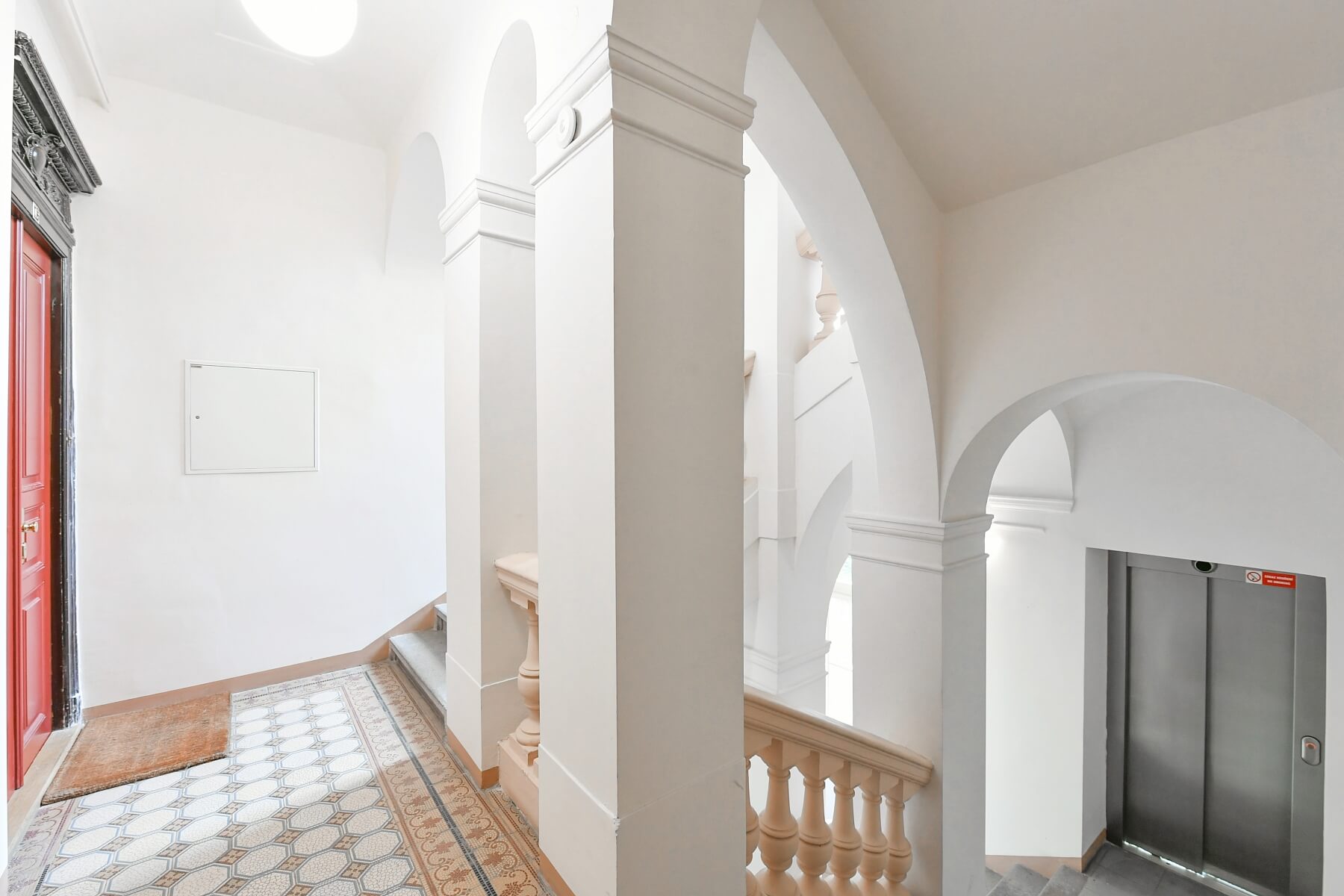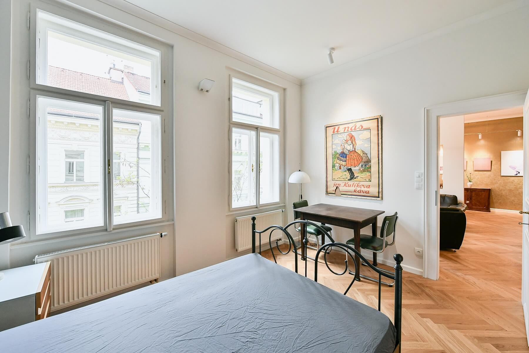 Nabízíme k pronájmu kompletně zrekonstruovaný, plně zařízený designový byt s jihozápaní orientací, situovaný ve 4. patře renovovaného bytového domu s výtahem a zachovanými původními prvky v srdci Královských Vinohrad. Budova stojí v atraktivní klidné lokalitě s plnou občanskou vybaveností v okolí, pár minut chůze od stanice metra a zastávek tramvají na Náměstí Míru, s velmi rychlou dostupností do centra. Všechna 4 velká okna v bytě jsou orientována do vyhledávané, stromy lemované ulice Americká s půvabnými kavárnami a restauracemi. V pěším dosahu je také oblíbený park Havlíčkovy sady.