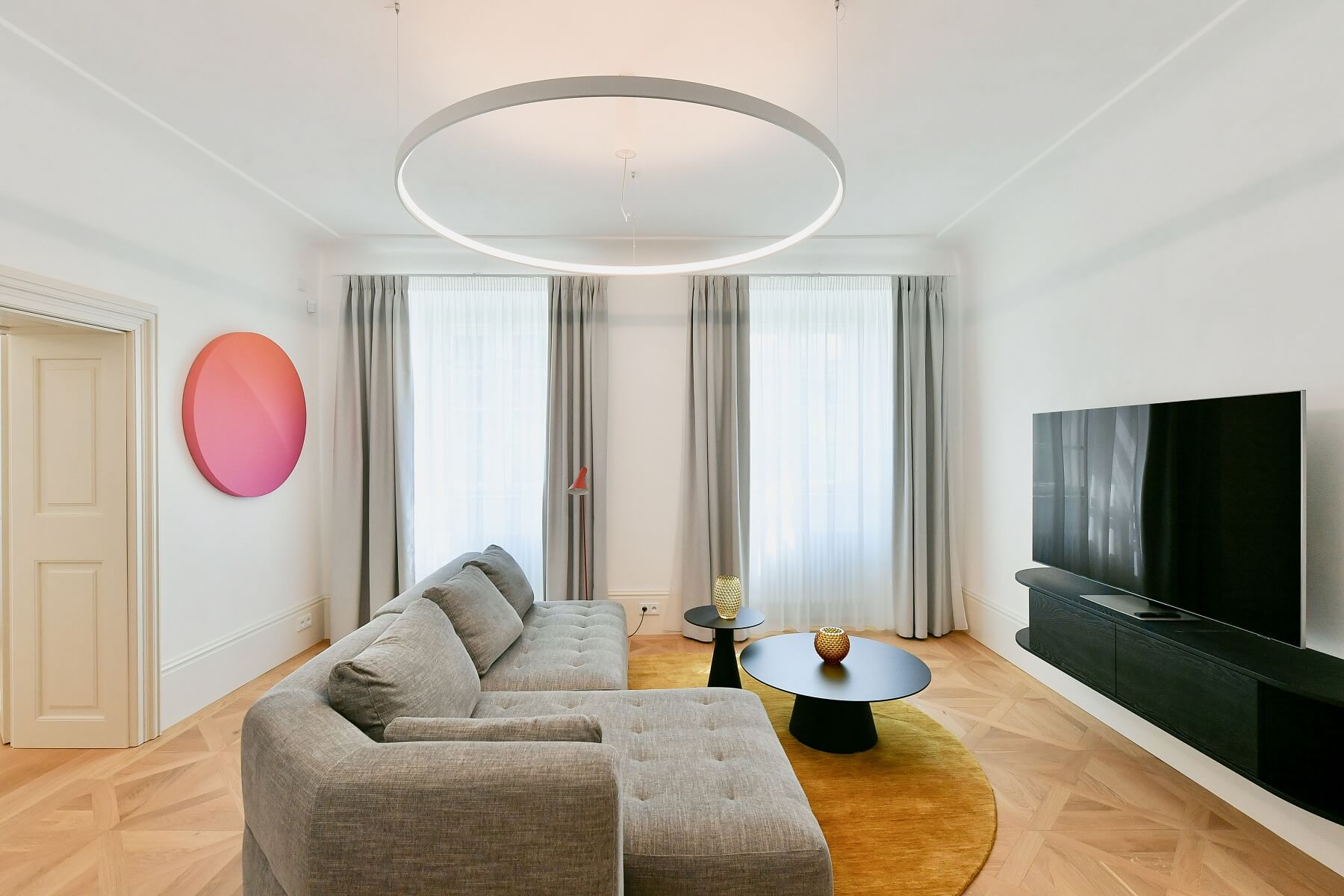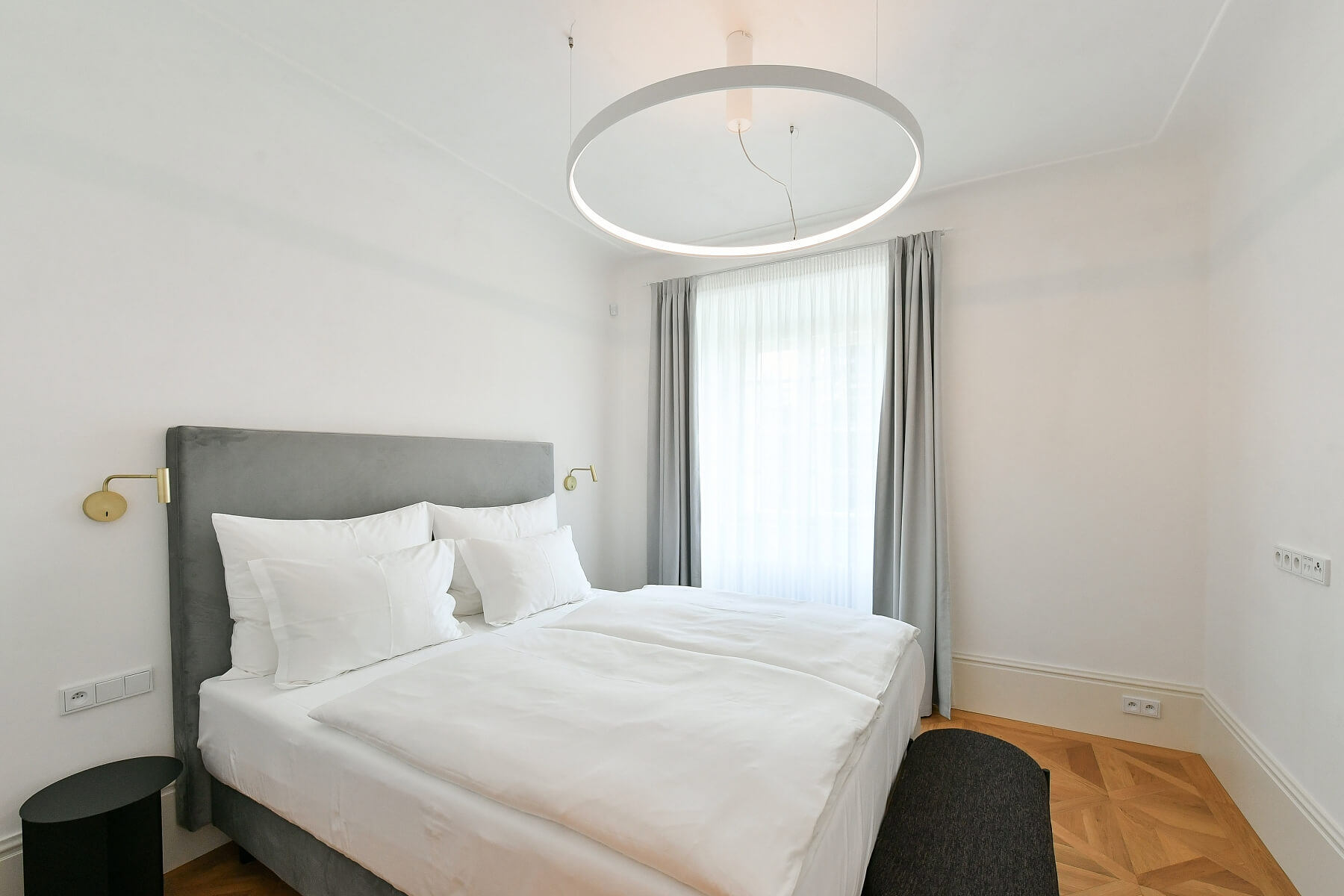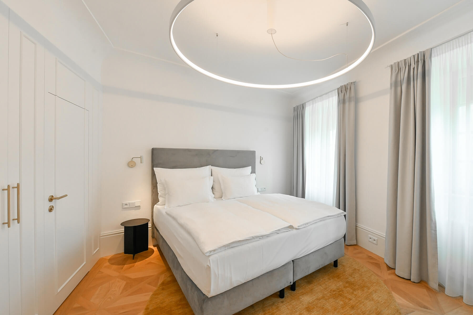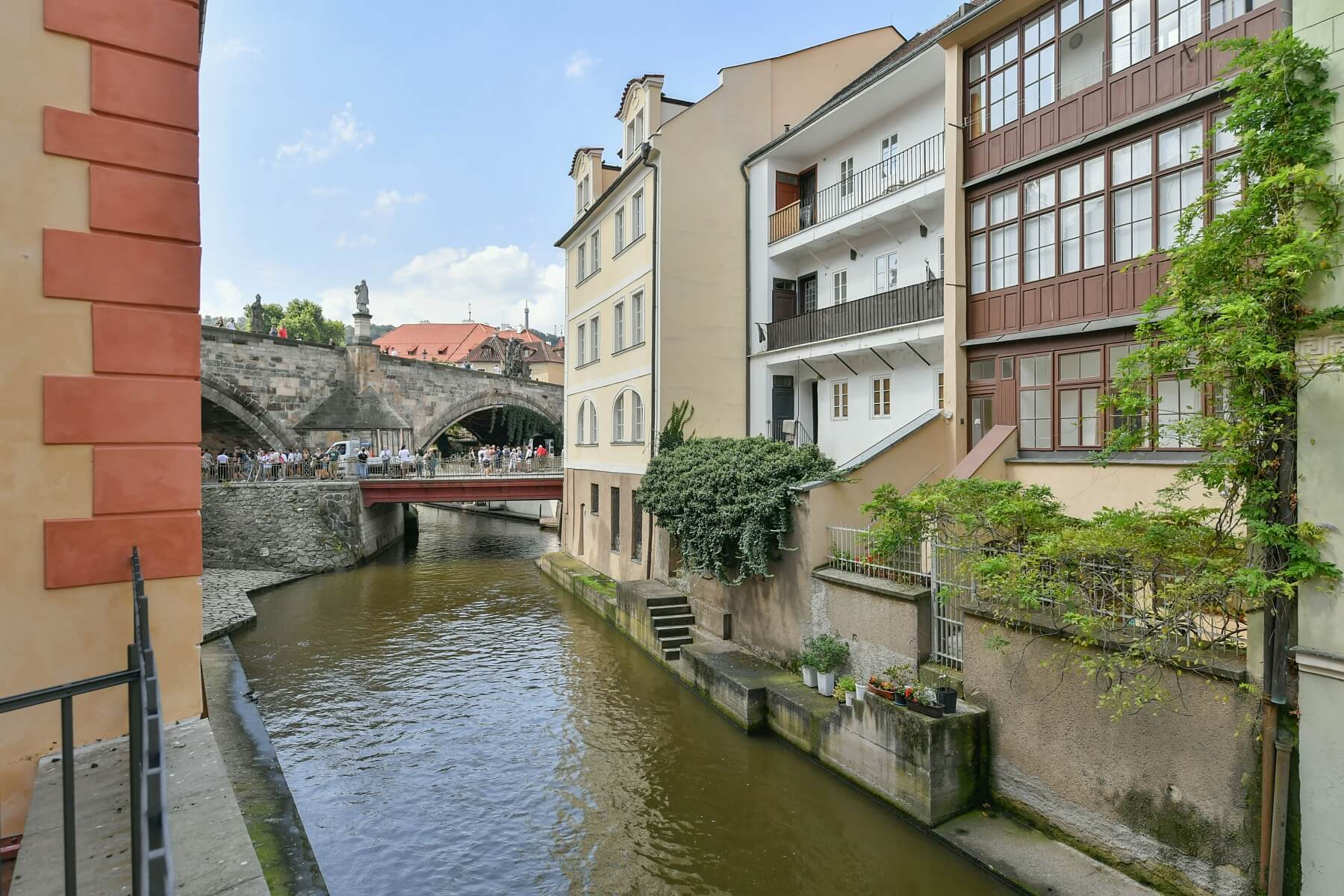 Nabízíme k pronájmu plně zařízený klimatizovaný designový byt se 2 koupelnami, situovaný v přízemí kompletně zrekonstruované rezidence s recepcí, saunou a posilovnou. Historická budova původně ze 17. století stojí v sousedství Karlova mostu a Čertovky na ostrově Kampa na Malé Straně, v půvabné lokalitě v pěším dosahu Pražského hradu a Starého města. Občanská vybavenost je dostupná v blízkém okolí, pár minut chůze od domu je vzdálena stanice metra Malostranská.