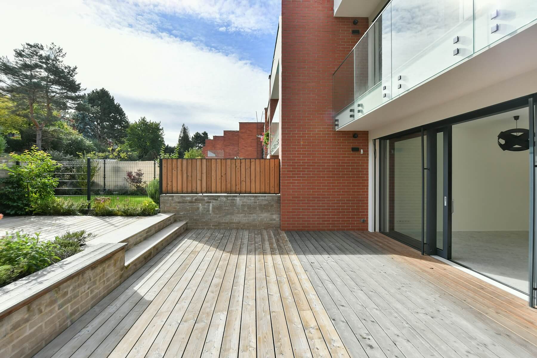 V přízemí domu se nachází obývací pokoj s plně vybavenou kuchyní a přístupem na terasu / zahrádku, technická místnost, toaleta a vstupní hala s přístupem do garáže. Horní patro nabízí hlavní ložnici s en-suite koupelnou (sprchový kout, toaleta), dvě ložnice se sdíleným balkonem a druhou koupelnu (vana, toaleta).