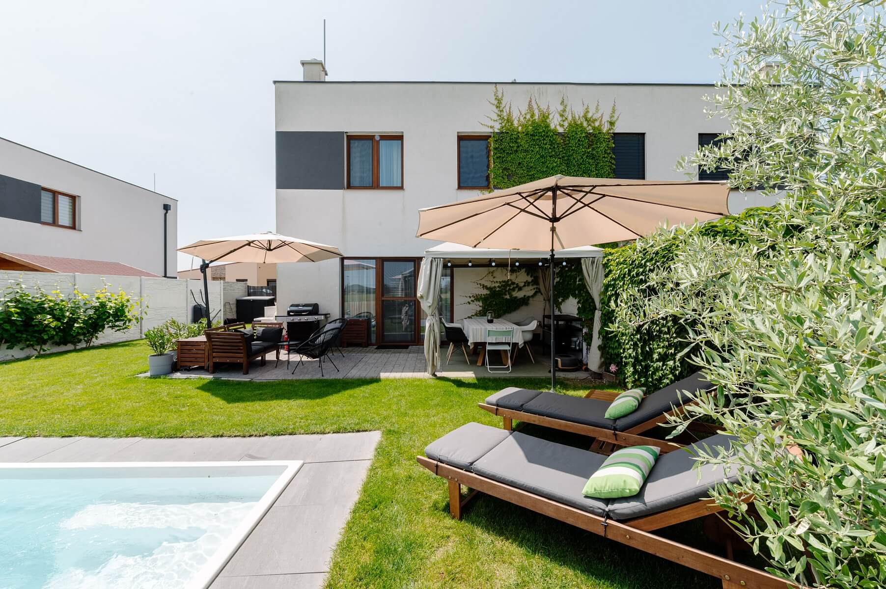 Plně zařízený čtyřpokojový rodinný dům se zahradou a bazénem k pronájmu poblíž Bratislavy. Dům se nachází v klidné a bezpečné lokalitě Hamuliakovo s rychlým napojením na R7, díky čemuž je centrum Bratislavy dostupné do 20 minut. V okolí najdete Dunajskou hráz, cyklostezky a možnosti aktivního odpočinku, což z této adresy činí ideální místo pro rodinné bydlení.